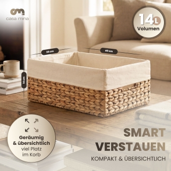 Casa Mina Korb Aufbewahrung L40xW25xH14cm 100% natürlich aus Wasserhyazinthe